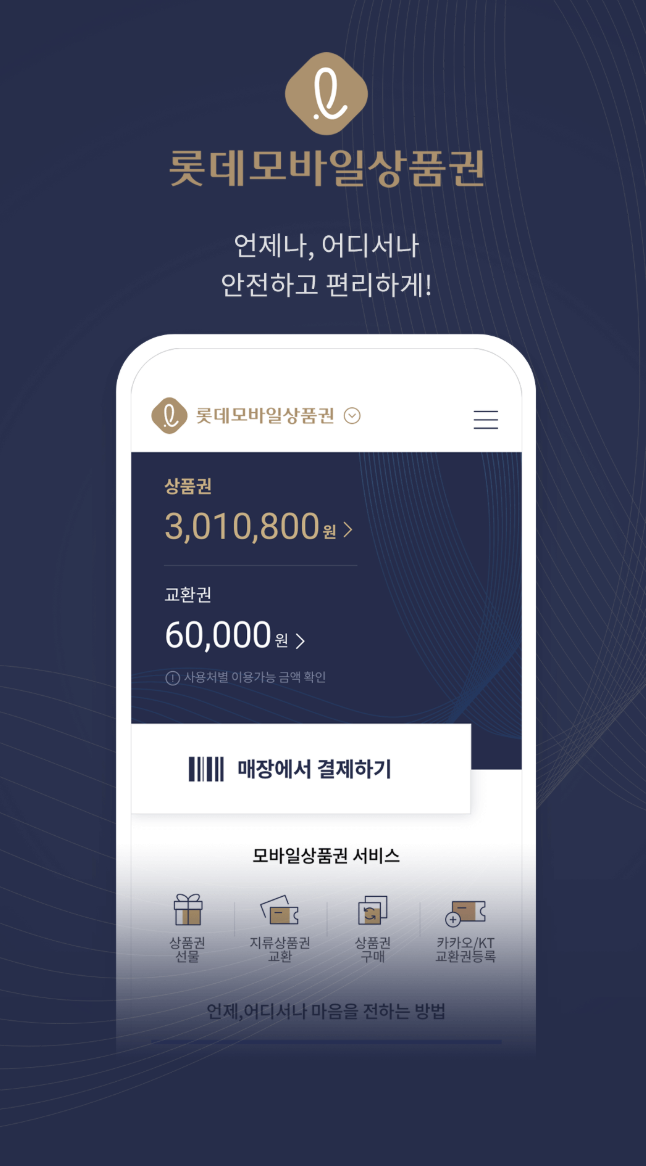 보안 설정을 철저히 하여 개인 정보를 안전하게 보호하세요. 롯데모바일상품권 앱은 사용자 친화적인 인터페이스와 다양한 기능을 제공하여, 상품권 구매와 관리가 더욱 편리해집니다. 특히, 선물하기 기능을 통해 소중한 사람에게 쉽게 상품권을 전달할 수 있으며, 내역 관리 기능을 통해 모든 거래를 한눈에 확인할 수 있습니다. 또한, 보안 설정을 통해 계정의 안전성을 높일 수 있어 안심하고 사용할 수 있습니다. 롯데모바일상품권 앱을 통해 더 편리하고 안전하게 상품권을 이용해 보세요.