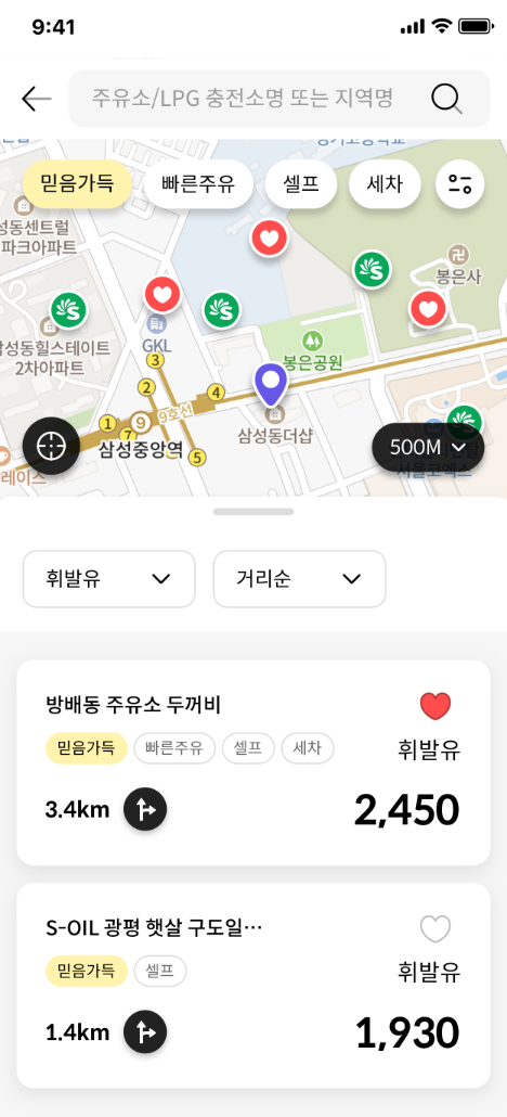 주유소 찾기 및 네비게이션