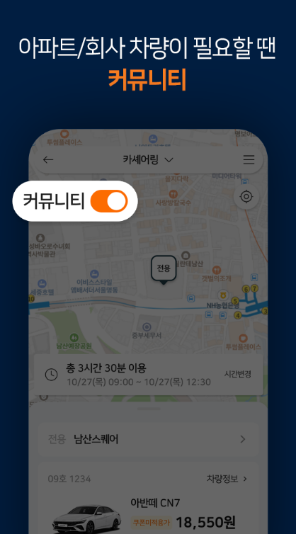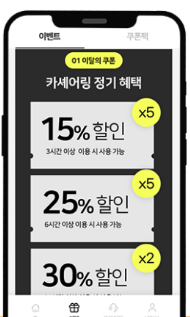 | 카셰어링 | 10분 단위 대여 | 포인트 적립 |
