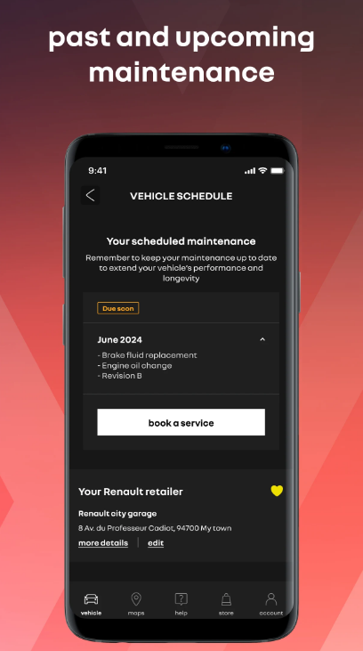 마이르노 앱은 Renault 차량 소유자들에게 필수적인 다양한 기능을 제공하며, 차량 관리의 효율성을 극대화합니다. 차량 정보 관리, 편리한 정비 예약, 원격 제어 기능, 그리고 멤버십 혜택까지, 모든 기능이 통합되어 사용자에게 최상의 경험을 선사합니다.