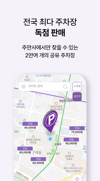 주만사 앱은 국내 1위의 월주차 앱으로, 전국 6만 5천 개 이상의 주차 정보를 제공하며, 월주차 매물도 최다 보유하고 있습니다. 주차와 전기차 충전 문제를 동시에 해결하는 대한민국 주차장 필수 앱으로 자리매김하고 있습니다.