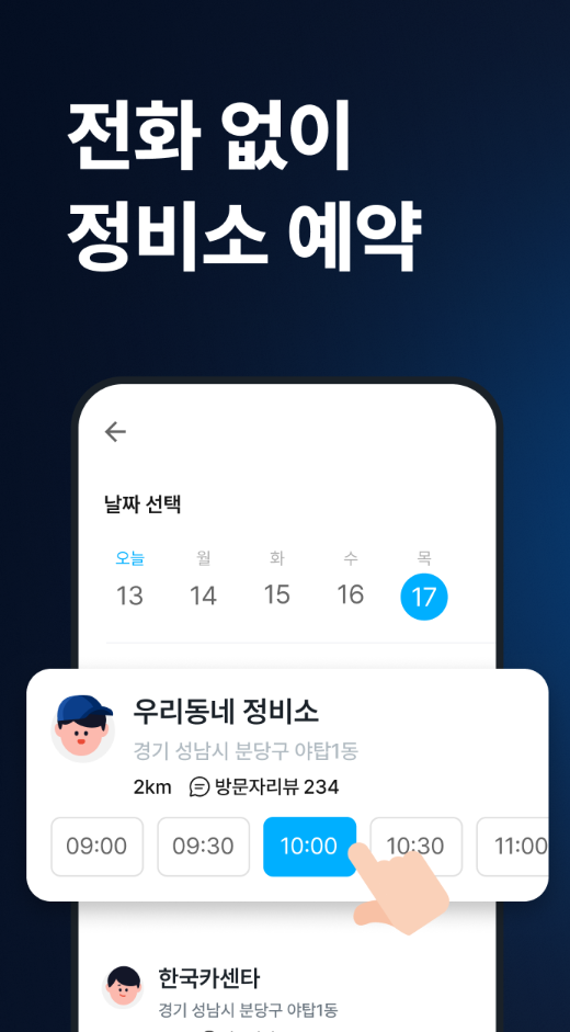 마이클 앱을 사용하면 내 차에 필요한 모든 정비를 간편하게 예약할 수 있습니다. 엔진오일 교환, 타이어 교체, 세차 등 다양한 서비스를 앱 하나로 손쉽게 예약하고, 친절한 정비소에서 시공받을 수 있습니다. 사전에 정비 비용을 확인하고 예약할 수 있어, 예산 계획도 세우기 쉽습니다. 사용자 친화적인 인터페이스로 누구나 쉽게 이용할 수 있습니다.