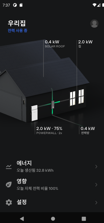 Tesla 앱은 차량 제어뿐만 아니라 파워월 에너지 관리 기능을 통해 사용자의 가정 에너지 소비와 태양광 발전 데이터를 효과적으로 모니터링할 수 있도록 지원합니다. 파워월과 연동된 이 시스템은 에너지 효율을 극대화하는 핵심 솔루션입니다. 사용자는 언제든지 전력 사용량과 저장 상태를 확인하며, 에너지 흐름을 실시간으로 관리할 수 있습니다.