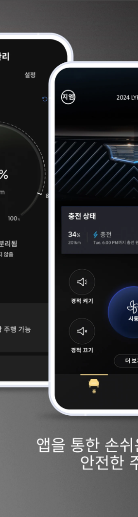 이 어플은 원격 시동, 문 제어, 상태 점검 등 다양한 기능을 통해 운전 중에도 스마트하게 차량을 관리할 수 있도록 지원하며, 전기차 충전 관리 기능도 포함되어 있어 친환경 모빌리티를 실현합니다.