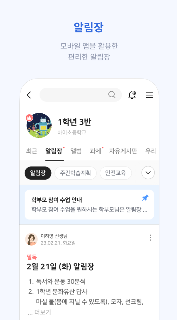 A. 푸시 알림 기능을 통해 학부모와 선생님에게 빠르고 정확한 공지 사항을 전달합니다. 이를 통해 중요한 정보를 실시간으로 확인할 수 있습니다.