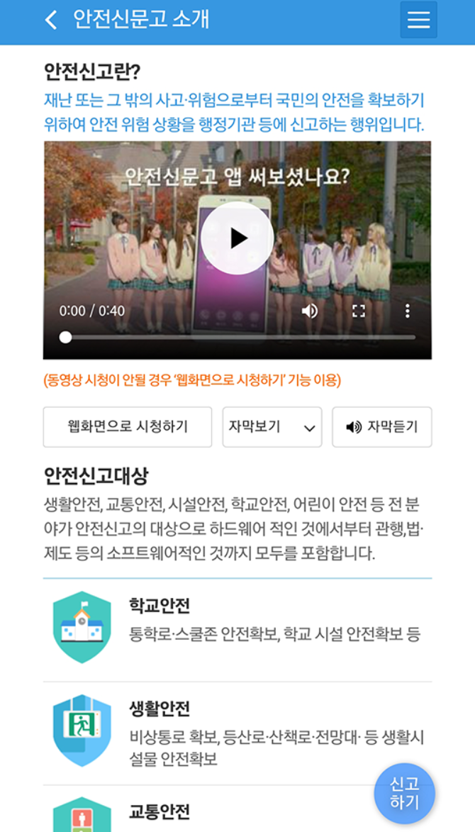 - iOS: 앱 스토어에서 ‘안전신문고’ 검색 후 설치