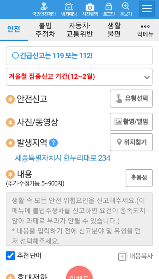⭐위에서 언급한 안전신문고 앱을 활용하면 신고 절차가 매우 간편해집니다.