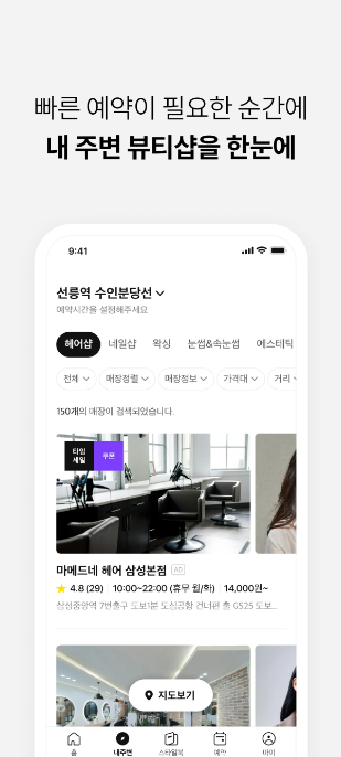 ⭐ 주변의 인기 매장과 디자이너를 손쉽게 확인할 수 있어요.