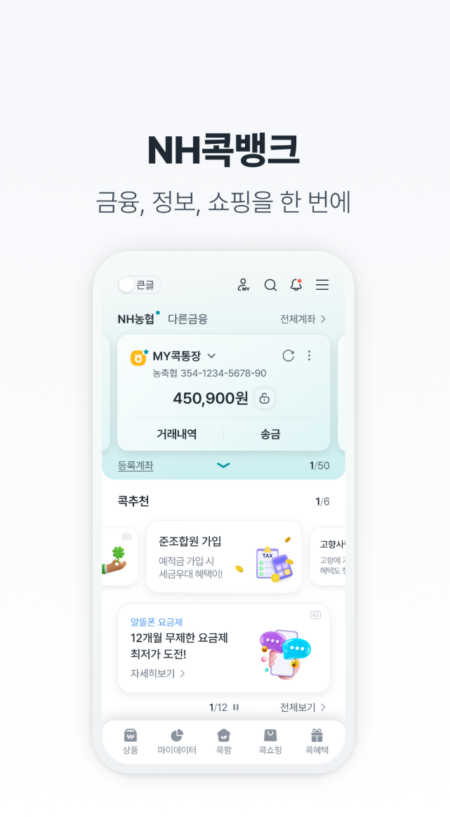 농협 NH올원뱅크 앱은 손쉽게 금융 서비스를 이용할 수 있도록 다양한 기능을 제공하며, 안전하고 간편한 인증 시스템과 함께 사용자 편의를 최우선으로 고려한 다양한 서비스를 제공합니다.