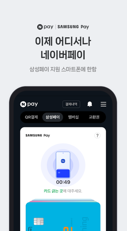 네이버페이 부동상 앱에서는 삼성페이 결제를 지원하여 언제 어디서든 빠르고 안전하게 결제할 수 있습니다. 편의점, 카페, 마트 등에서 QR코드를 통해 결제 시 다양한 혜택을 누릴 수 있으며, 결제마다 포인트를 적립할 수 있습니다. 또한, 갤럭시 워치4 이상의 스마트워치로도 스마트폰 없이 현장결제가 가능하여 더욱 편리한 결제 환경을 제공합니다.