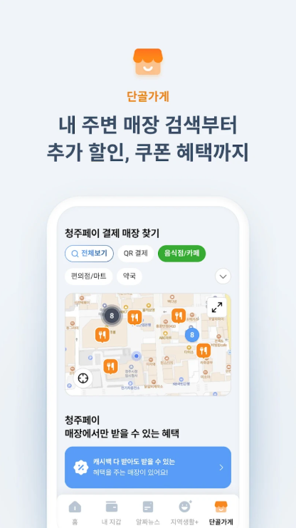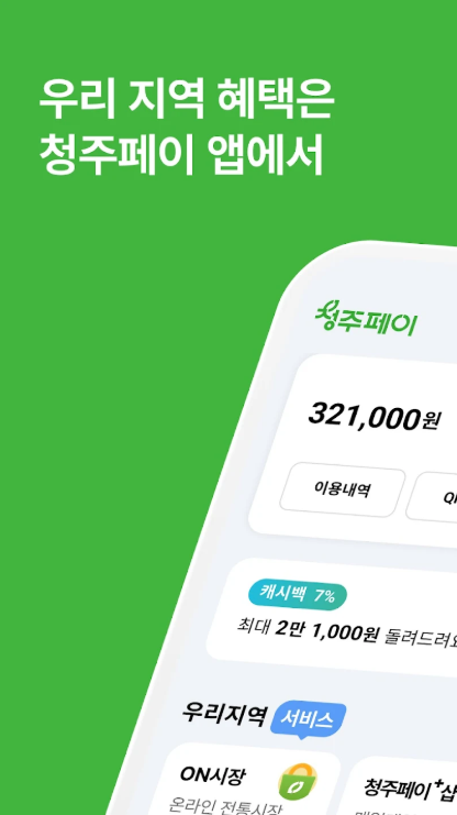 청주페이는 지역 내 소비를 촉진하고, 소상공인과 지역 경제에 실질적인 도움이 되는 결제 시스템입니다. 결제 시 캐시백 인센티브를 제공하여 주민들의 참여를 유도하고 있습니다.