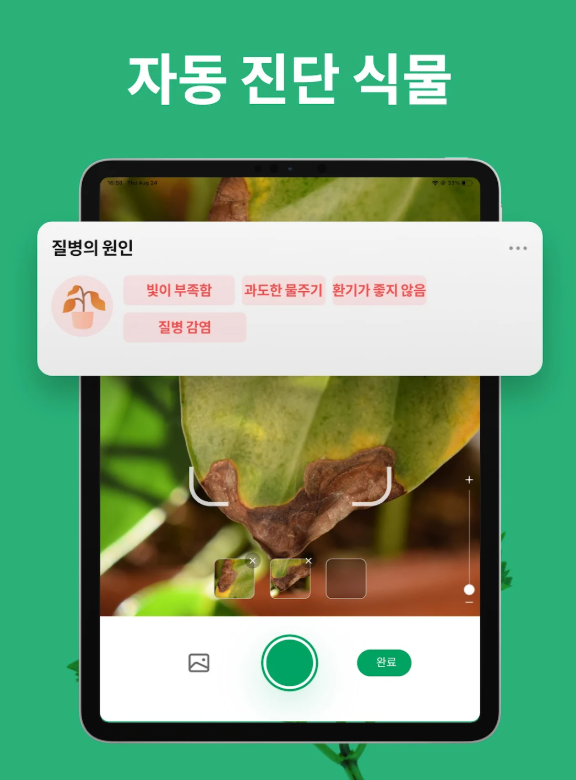 식물이름앱 PictureThis는 질병을 자동으로 진단하고, 이에 맞는 치료 방법을 제시합니다. 병들었을 때도 걱정할 필요 없이, 사진을 찍어 진단을 받으면 즉시 치료 계획을 받게 됩니다.