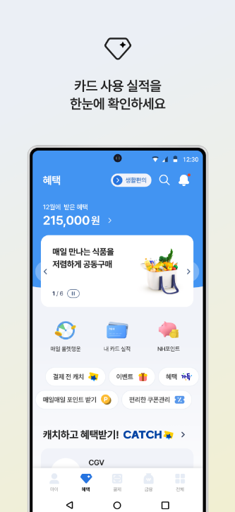 NH pay앱은 농협카드와 계좌를 등록하여 다양한 결제 수단을 제공하고, 다양한 생활 혜택을 누릴 수 있는 플랫폼입니다.