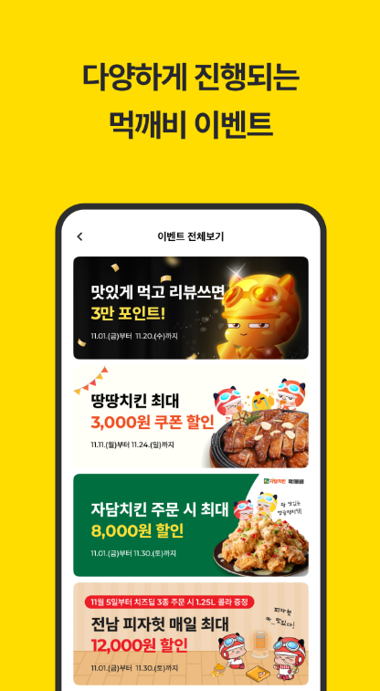 먹깨비어플은 다양한 할인 혜택을 제공하여 소비자들이 음식을 더 저렴하게 주문할 수 있게 합니다. 타임할인, 쿠폰할인, 스탬프적립 등을 통해 음식 배달의 비용을 절감할 수 있습니다. 매번 새로운 할인 혜택을 누려 보세요.
