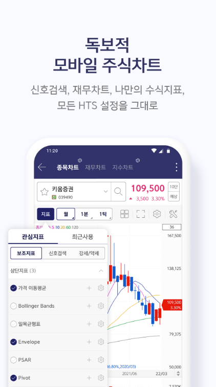 키움증권은 HTS 수준의 차트 기능을 제공하여 시장 분석을 보다 정밀하게 수행할 수 있습니다. 재무차트와 나만의 수식지표를 통해 더욱 효율적인 투자 결정을 내릴 수 있습니다.