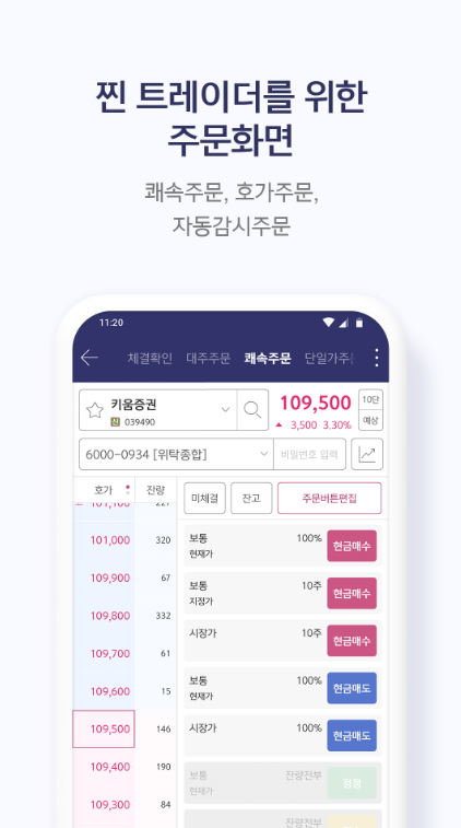 사용자는 퀵 메뉴와 사용자 메뉴 편집 기능을 통해 자주 이용하는 화면을 쉽게 등록하여 효율적으로 거래할 수 있습니다.