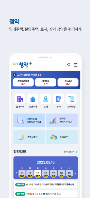 LH청약플러스 앱을 통해 편리하게 주택 분양과 임대주택 정보를 확인하고 신청하여, 원하는 주거 환경을 빠르게 확보할 수 있습니다. 공공주택 신청의 효율성을 극대화하고 정확한 정보 제공으로 사용자 만족도를 높이는 플랫폼입니다.