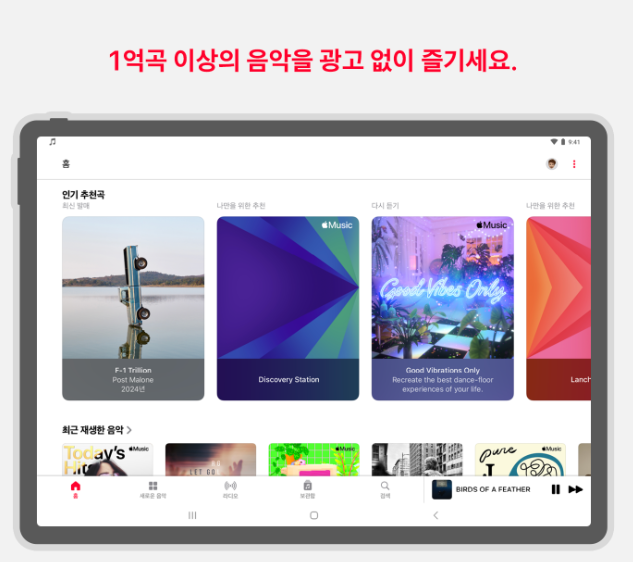 애플뮤직앱은 광고 없이 무제한으로 노래를 들을 수 있는 서비스로, Dolby Atmos 공간 음향을 통해 음악을 더욱 풍성하게 경험할 수 있습니다.
