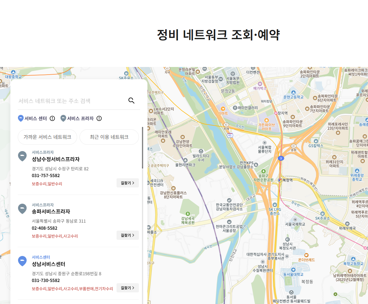 전화 연결 후 상담원에게 차량명, 거주 지역, 증상 및 필요한 정비 내용, 희망 날짜와 시간을 알려주면 신속하게 완료됩니다. 온라인이 익숙하지 않다면 전화로 하는 것도 좋은 방법입니다.