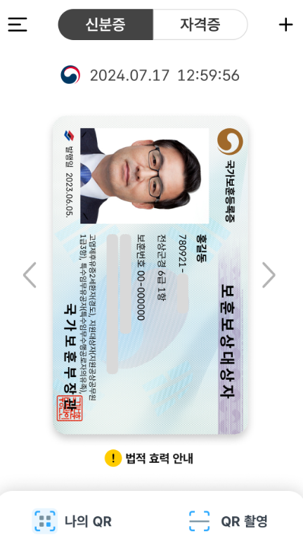 🚩 모바일 주민등록증, 운전면허증, 보훈등록증 등 다양한 신분증을 앱 하나로 관리할 수 있습니다. 모든 모바일 신분증은 행정안전부 및 경찰청이 발급하며, 실물 신분증과 동일한 법적 효력을 가집니다. 앱 저장 방식은 최상위 암호화 기술로 개인정보를 안전하게 보호합니다. 기존 신분증을 IC 신분증으로 교체 발급하거나 QR 발급 방식을 통해 즉시 사용 가능하며, 알뜰폰 사용자도 대부분 지원됩니다.
