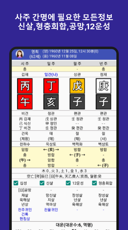 ⭐ 설치 직후 설정 팁 첫 실행 시 생년월일시 입력 화면에서 정확한 시주 보정을 확인하세요.