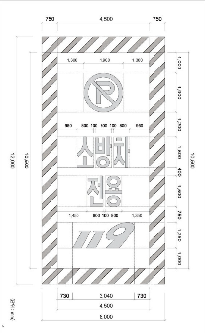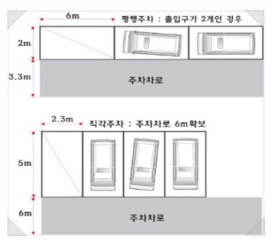 - 직각주차: 6.0m 확보
