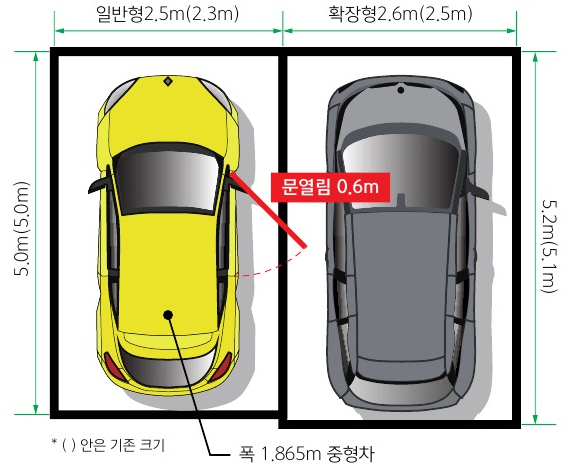 | 기계식 주차장 | 2.15×1.6×5.15m 이상 | 중형 기준 |
