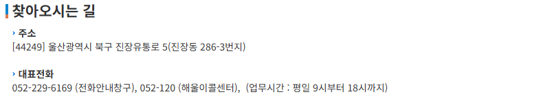 | 북구 진장유통로 | 등록 및 발급 | 은행 출장소 |