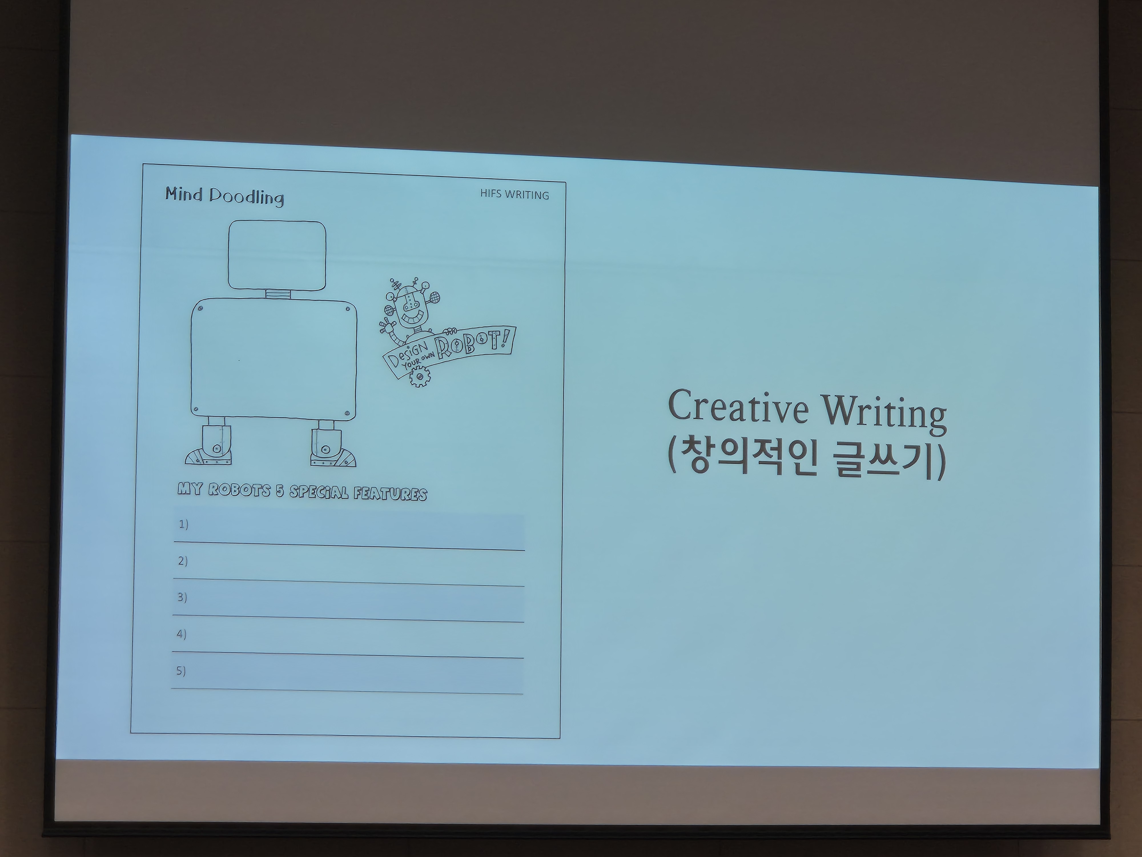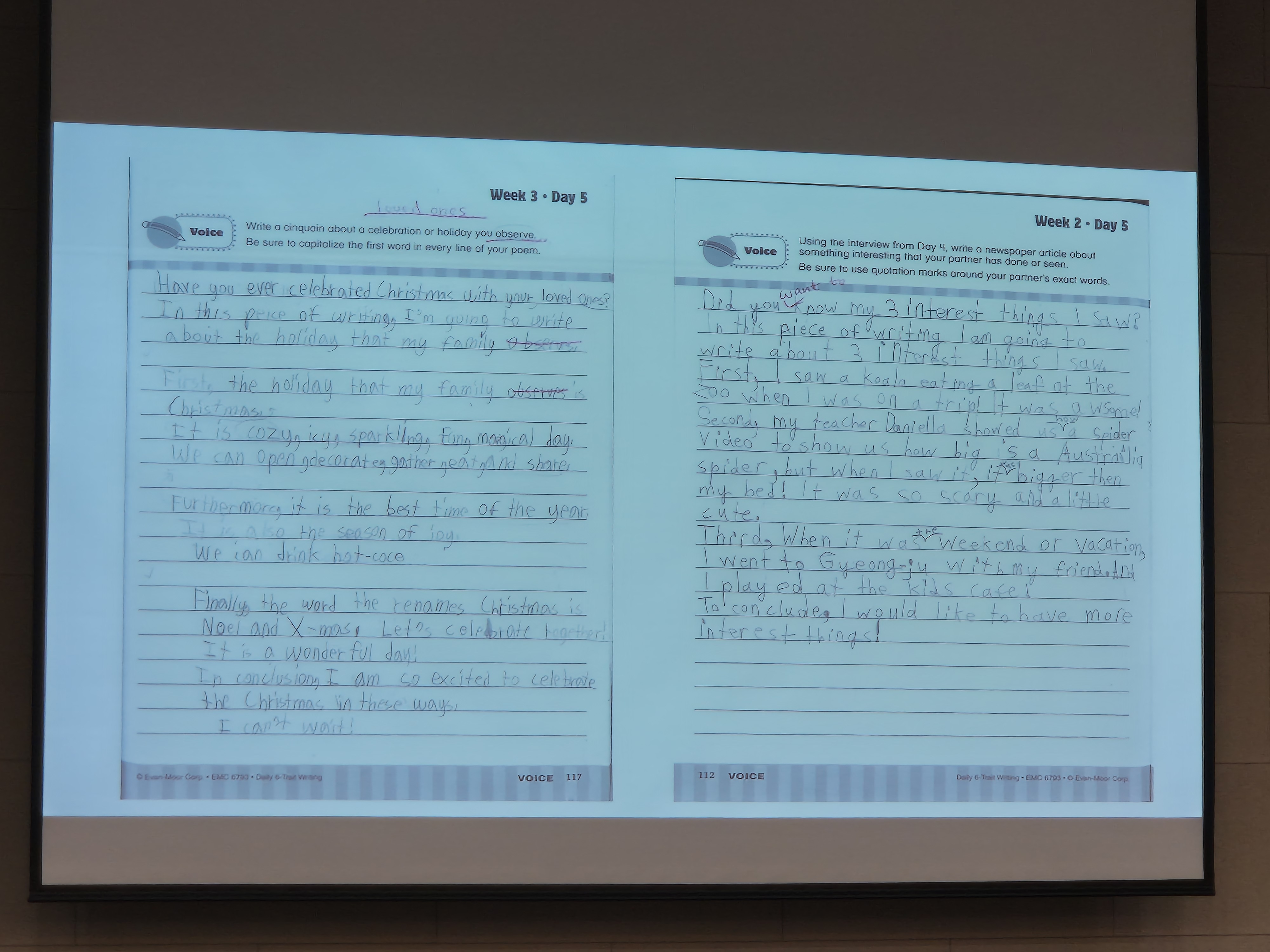 제일 깜짝 놀랐던 아이들 Writing 실력입니다. 물론 가장 잘한 아이들 예시를 보여준거겠지만, 보여주자마자 다들 감탄합니다. 3년차 실력이라고 하네요. 이게 아주 임팩트가 강하게 남습니다.
