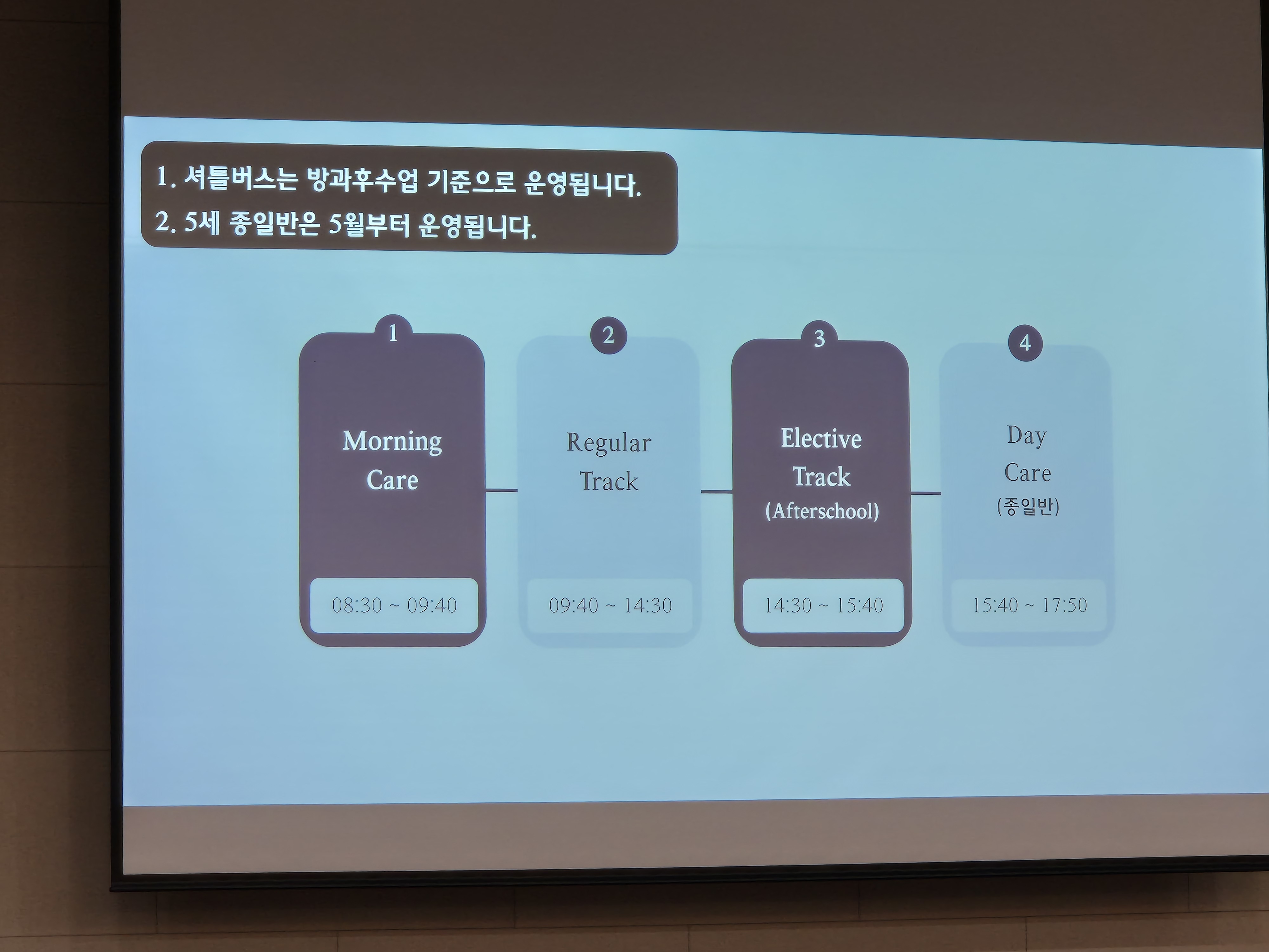 대충 월 179만원 플러스 알파입니다. 수업료 + 식비 + 방과후 수업료 + 셔틀비 + 종일반 다하면 200만원 이상 든다고 생각하면 될 거 같습니다.