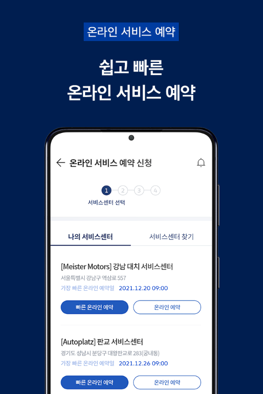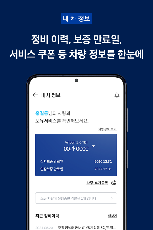 | 정비 예약 | 편리하게 정비 예약을 할 수 있습니다. | 정비 메뉴에서 예약을 진행하세요. |